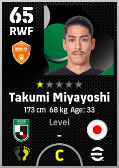 . Takumi Miyayoshi is a Right Wing Forward footballer from Japan who plays for Renofa Yamaguchi Fc in eFootball 2026.