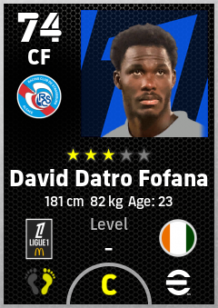 . David Datro Fofana is a Center Forward footballer from Côte D'ivoire who plays for Rc Strasbourg Alsace in eFootball 2026.