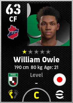 . William Owie is a Center Forward footballer from Japan who plays for Iwaki Fc in eFootball 2026.