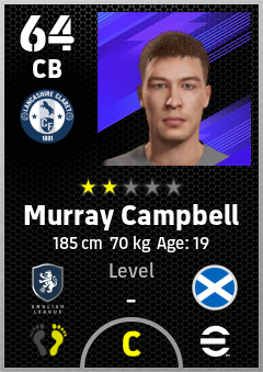 . Murray Campbell is a Center Back footballer from Scotland who plays for Burnley Rb in eFootball 2026.
