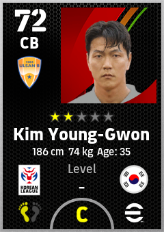 . Kim Young-Gwon is a Center Back footballer from Korea Republic who plays for Ulsan B in eFootball 2026.