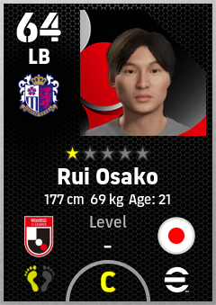 . Rui Osako is a Left Back footballer from Japan who plays for Cerezo Osaka in eFootball 2026.
