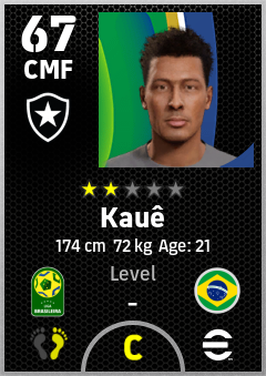 . Kauê is a Center Midfielder footballer from Brazil who plays for Botafogo Fr in eFootball 2026.