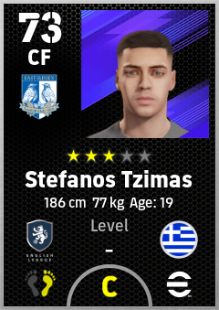 . Stefanos Tzimas is a Center Forward footballer from Greece who plays for Brighton Wb in eFootball 2026.