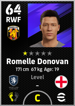 . Romelle Donovan is a Right Wing Forward footballer from England who plays for Brentford Rw in eFootball 2026.