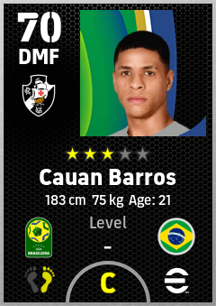 . Cauan Barros is a Defensive Midfielder footballer from Brazil who plays for Cr Vasco Da Gama in eFootball 2026.