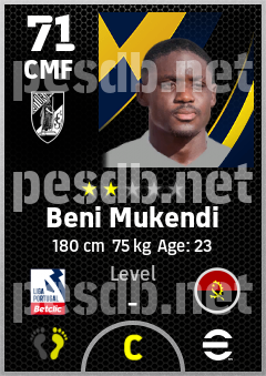 . Beni Mukendi is a Center Midfielder footballer from Angola who plays for Vitória Sc in eFootball 2026.