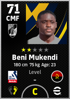 . Beni Mukendi is a Center Midfielder footballer from Angola who plays for Vitória Sc in eFootball 2026.