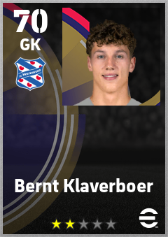 . Bernt Klaverboer is a Goalkeeper footballer from Netherlands who plays for Sc Heerenveen in eFootball 2026.