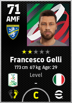 . Francesco Gelli is a Attacking Midfielder footballer from Italy who plays for Frosinone Ga in eFootball 2026.