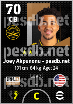 . Joey Akpunonu is a Center Back footballer from United States who plays for Charleston Battery in eFootball 2026.