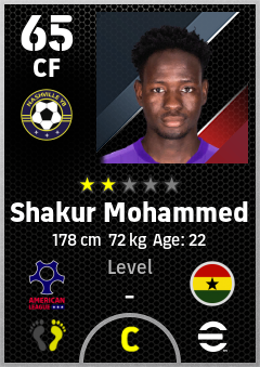 . Shakur Mohammed is a Center Forward footballer from Ghana who plays for Nashville Yb in eFootball 2026.