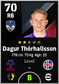 . Dagur Thórhallsson is a Right Back footballer from Iceland who plays for Montreal Bwb in eFootball 2026.