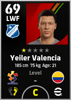 . Yeiler Valencia is a Left Wing Forward footballer from Colombia who plays for Manizales B in eFootball 2026.