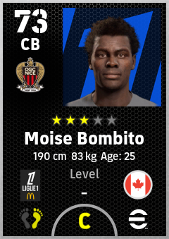 . Moise Bombito is a Center Back footballer from Canada who plays for Ogc Nice in eFootball 2026.