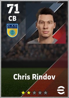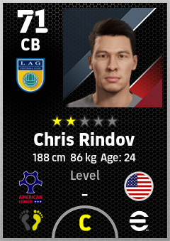 . Chris Rindov is a Center Back footballer from United States who plays for Los Angeles Wby in eFootball 2026.