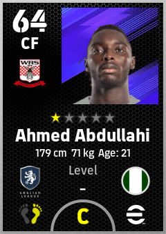 . Ahmed Abdullahi is a Center Forward footballer from Nigeria who plays for Sunderland Rwb in eFootball 2026.