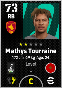 . Mathys Tourraine is a Right Back footballer from Morocco who plays for Rodez Aveyron Football in eFootball 2026.
