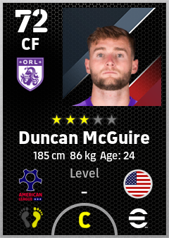 . Duncan Mcguire is a Center Forward footballer from United States who plays for Orlando Pw in eFootball 2026.