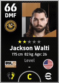 . Jackson Walti is a Defensive Midfielder footballer from United States who plays for Pittsburgh Riverhounds in eFootball 2026.