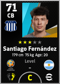 . Santiago Fernández is a Center Back footballer from Argentina who plays for Córdoba Ab in eFootball 2026.