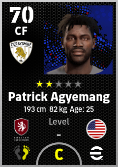 . Patrick Agyemang is a Center Forward footballer from United States who plays for Derby Wb in eFootball 2026.
