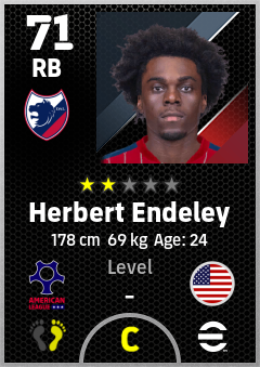 . Herbert Endeley is a Right Back footballer from United States who plays for Dallas Rw in eFootball 2026.