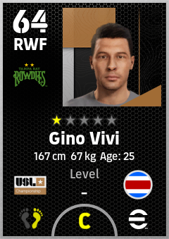 . Gino Vivi is a Right Wing Forward footballer from Costa Rica who plays for Tampa Bay Rowdies in eFootball 2026.
