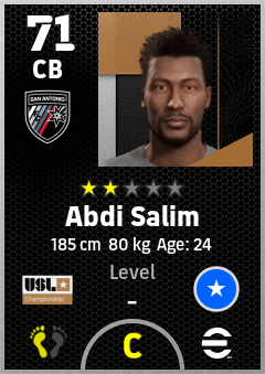 . Abdi Salim is a Center Back footballer from Somalia who plays for San Antonio Fc in eFootball 2026.