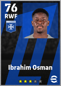 . Ibrahim Osman is a Right Wing Forward footballer from Ghana who plays for Aj Auxerre in eFootball 2026.