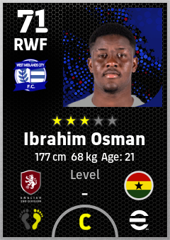 . Ibrahim Osman is a Right Wing Forward footballer from Ghana who plays for Birmingham B in eFootball 2026.