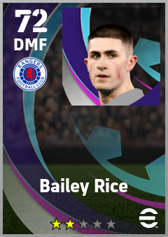 . Bailey Rice is a Defensive Midfielder footballer from Scotland who plays for Rangers Fc in eFootball 2026.