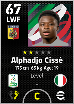 . Alphadjo Cissè is a Left Wing Forward footballer from Italy who plays for Catanzaro Gr in eFootball 2026.