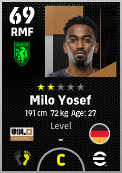 . Milo Yosef is a Right Midfielder footballer from Germany who plays for Lexington Sc in eFootball 2026.