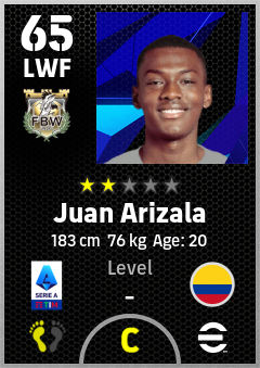 . Juan Arizala is a Left Wing Forward footballer from Colombia who plays for Udinese Calcio in eFootball 2026.