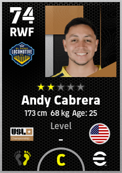 . Andy Cabrera is a Right Wing Forward footballer from United States who plays for El Paso Locomotive Fc in eFootball 2026.