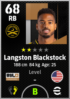. Langston Blackstock is a Right Back footballer from United States who plays for Charleston Battery in eFootball 2026.