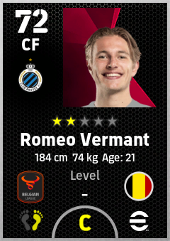 . Romeo Vermant is a Center Forward footballer from Belgium who plays for Brugge Bz in eFootball 2026.