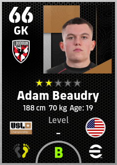 . Adam Beaudry is a Goalkeeper footballer from United States who plays for Loudoun United Fc in eFootball 2026.
