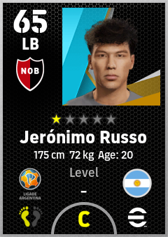 . Jerónimo Russo is a Left Back footballer from Argentina who plays for Rosario Rn in eFootball 2026.