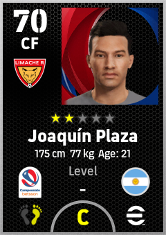 . Joaquín Plaza is a Center Forward footballer from Argentina who plays for Limache R in eFootball 2026.