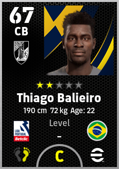. Thiago Balieiro is a Center Back footballer from Brazil who plays for Vitória Sc in eFootball 2026.
