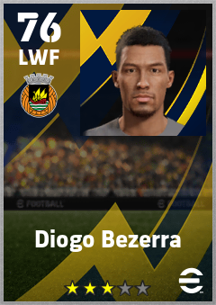. Diogo Bezerra is a Left Wing Forward footballer from Brazil who plays for Rio Ave Fc in eFootball 2026.