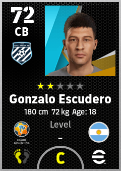 . Gonzalo Escudero is a Center Back footballer from Argentina who plays for Avellaneda Ab in eFootball 2026.