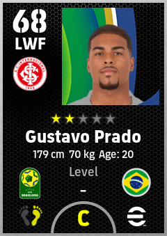 . Gustavo Prado is a Left Wing Forward footballer from Brazil who plays for Sc Internacional in eFootball 2026.