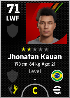 . Jhonatan Kauan is a Left Wing Forward footballer from Brazil who plays for Free in eFootball 2026.