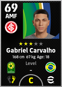 . Gabriel Carvalho is a Attacking Midfielder footballer from Brazil who plays for Sc Internacional in eFootball 2026.