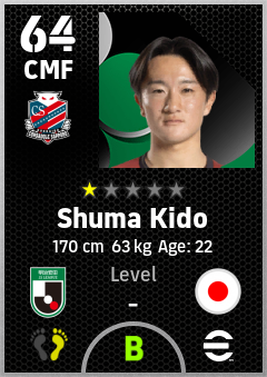 . Shuma Kido is a Center Midfielder footballer from Japan who plays for Consadole Sapporo in eFootball 2026.