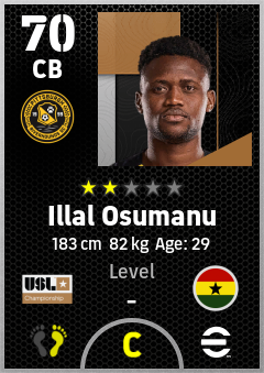 . Illal Osumanu is a Center Back footballer from Ghana who plays for Pittsburgh Riverhounds in eFootball 2026.