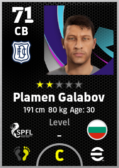 . Plamen Galabov is a Center Back footballer from Bulgaria who plays for Dundee Fc in eFootball 2026.